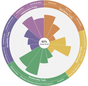 The Trait Emotional Intelligence Questionnaire (TEIQue) measures 15 distinct facets grouped into four broader factors: Well-being, Self-Control, Emotionality, and Sociability. Two additional facets, Adaptability and Self-motivation, contribute directly to the global trait EI score.