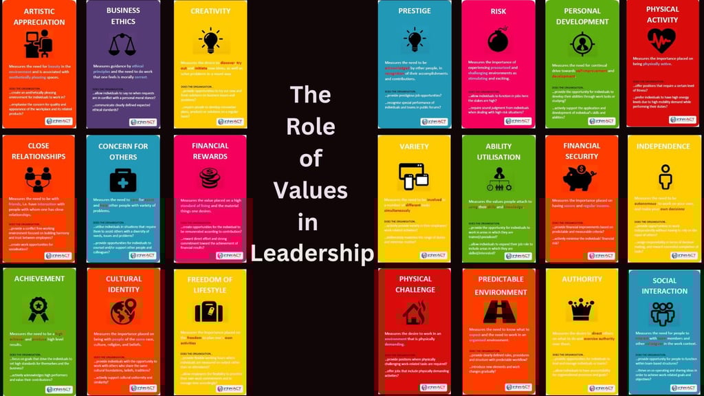 Values represent what we find important in life and at work. They are the bedrock of our behaviour and decision-making. In leadership, values become especially significant because they shape not only the leader’s actions but also the culture of the entire team or organization. When leaders operate in alignment with their core values, they create stability and trust, encouraging others to follow their example.