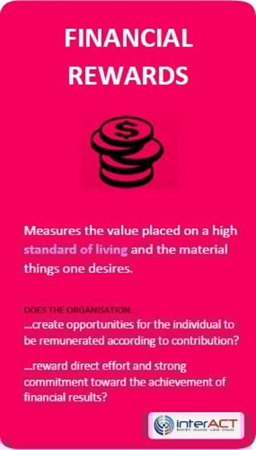 The Personal Values Profile and Corporate Values Profile assessment is unique and looks at those Values that are most important and ranks them accordingly. From a series of 21 pre-defined values they are ranked from most to least important and can help identify the alignment with the companies core values